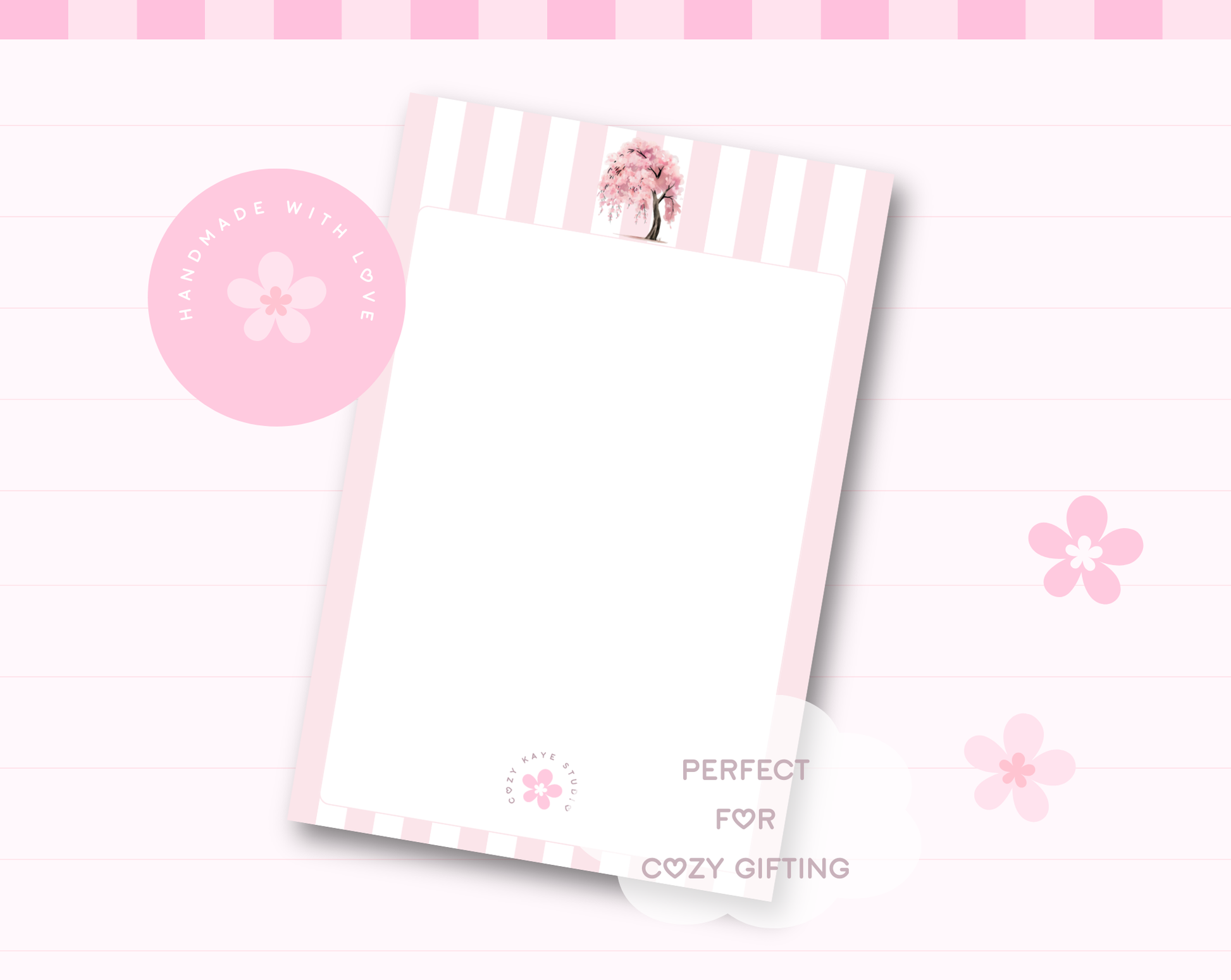 Bring a soft, peaceful touch to your everyday notes with this Sakura Tree Memo Pad, designed with Cozy Kaye Studio’s signature pastel stripes and delicate cherry blossom artwork.